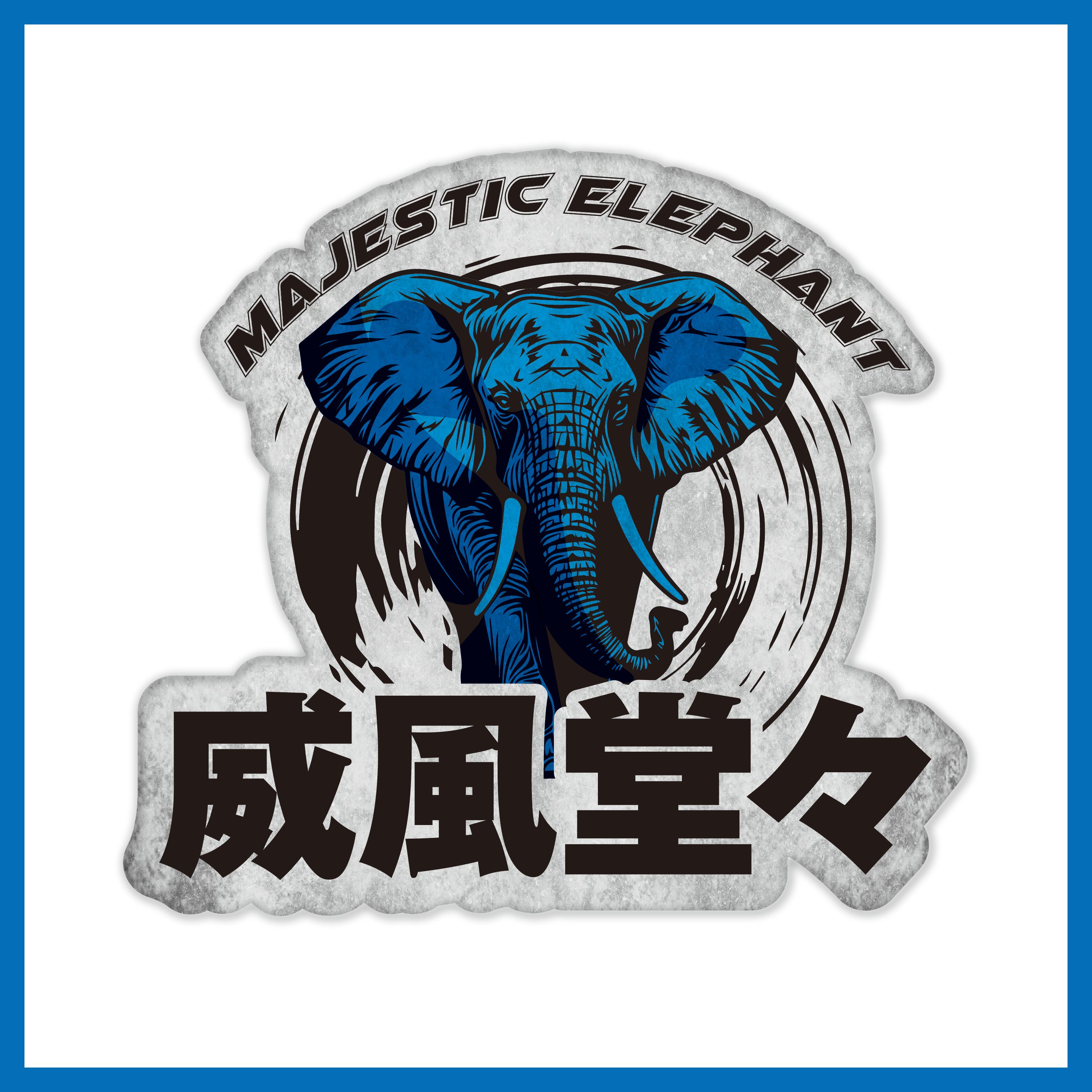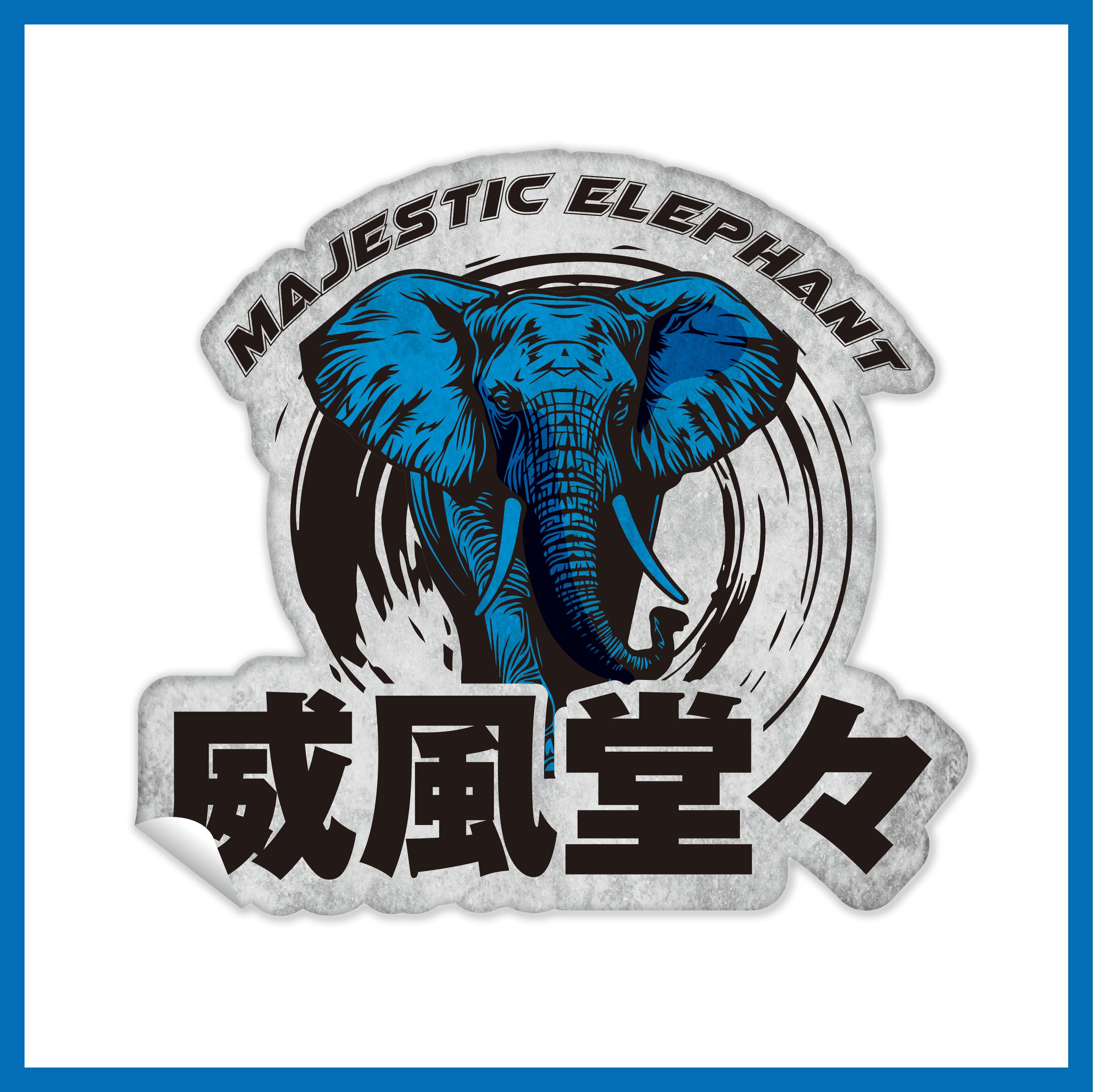 TItle:威風堂々 Type:ステッカー Size:100mm×91mm 堂々とした象をモチーフにしたステッカーです。