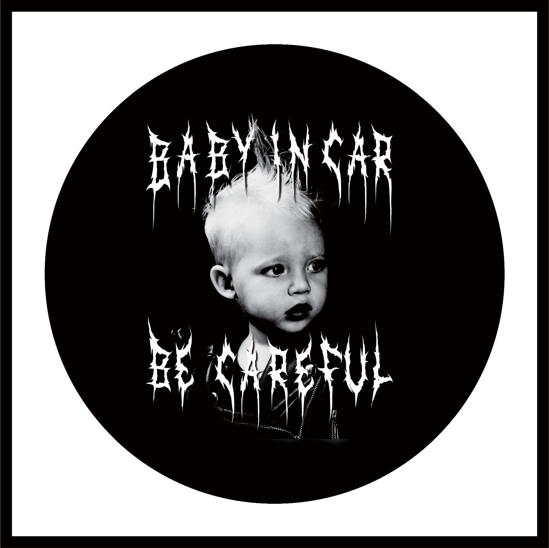[ステッカー]BABY IN CAR Size:120mm×120mm 耐久性の強い素材での販売をしておりますので少々お値段が高くなります。 ※完全受注製作ですのでお届けに時間がかかります。