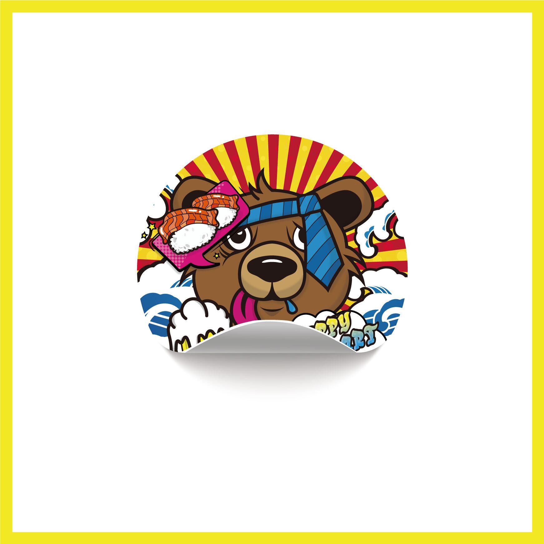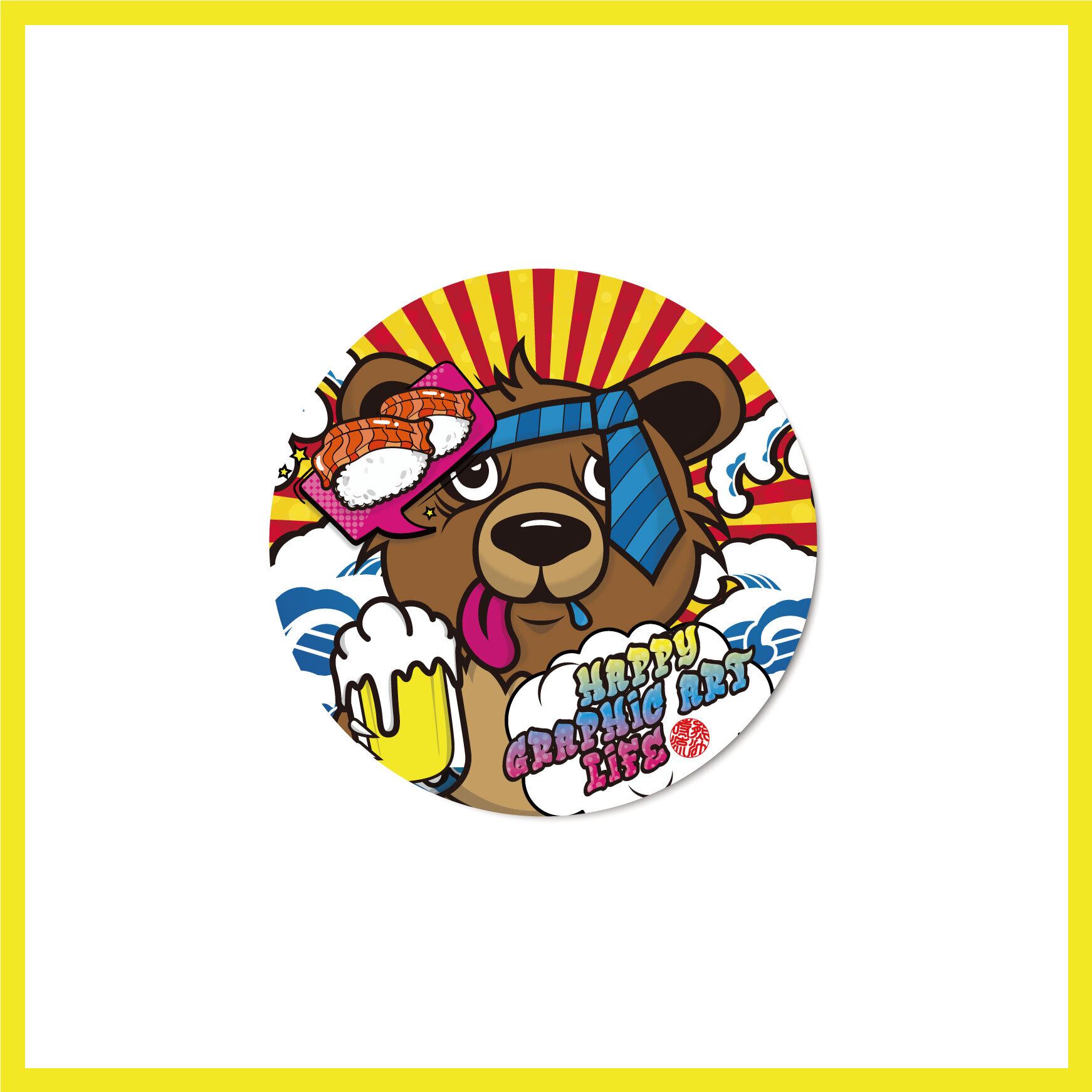 TItle:DRUNK BEAR Type:ステッカー Size:42mm×42mm ポップな酔っ払いのくまさん。 スマホケースに挟んだり貼り付けたりして、持ち歩いてみませんか?