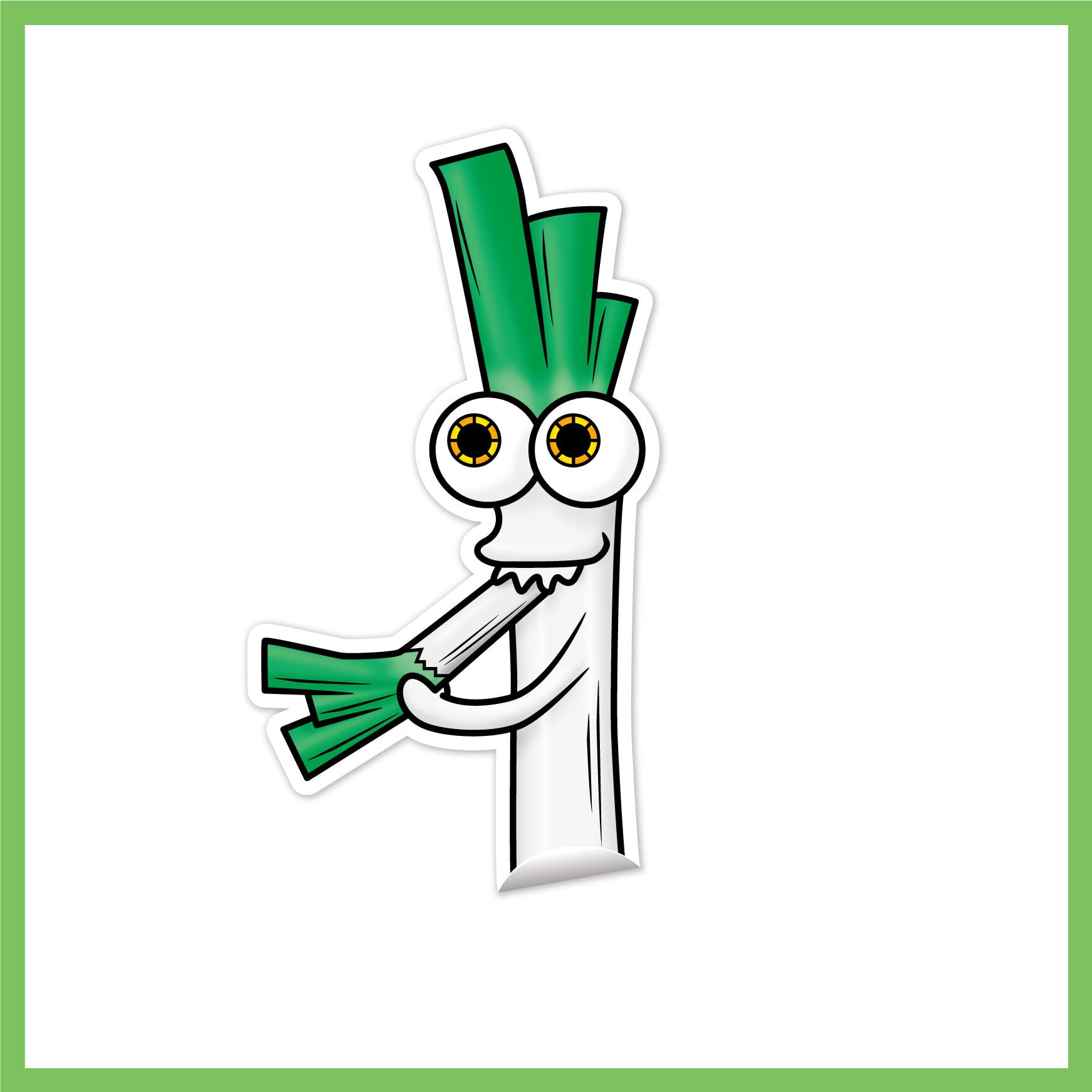 TItle:ネギ食うネギくん Type:ステッカー Size:80mm×41mm キモカワのネギくんがネギを食べています。 スマホケースに挟んだり貼り付けたりして、持ち歩いてみませんか?