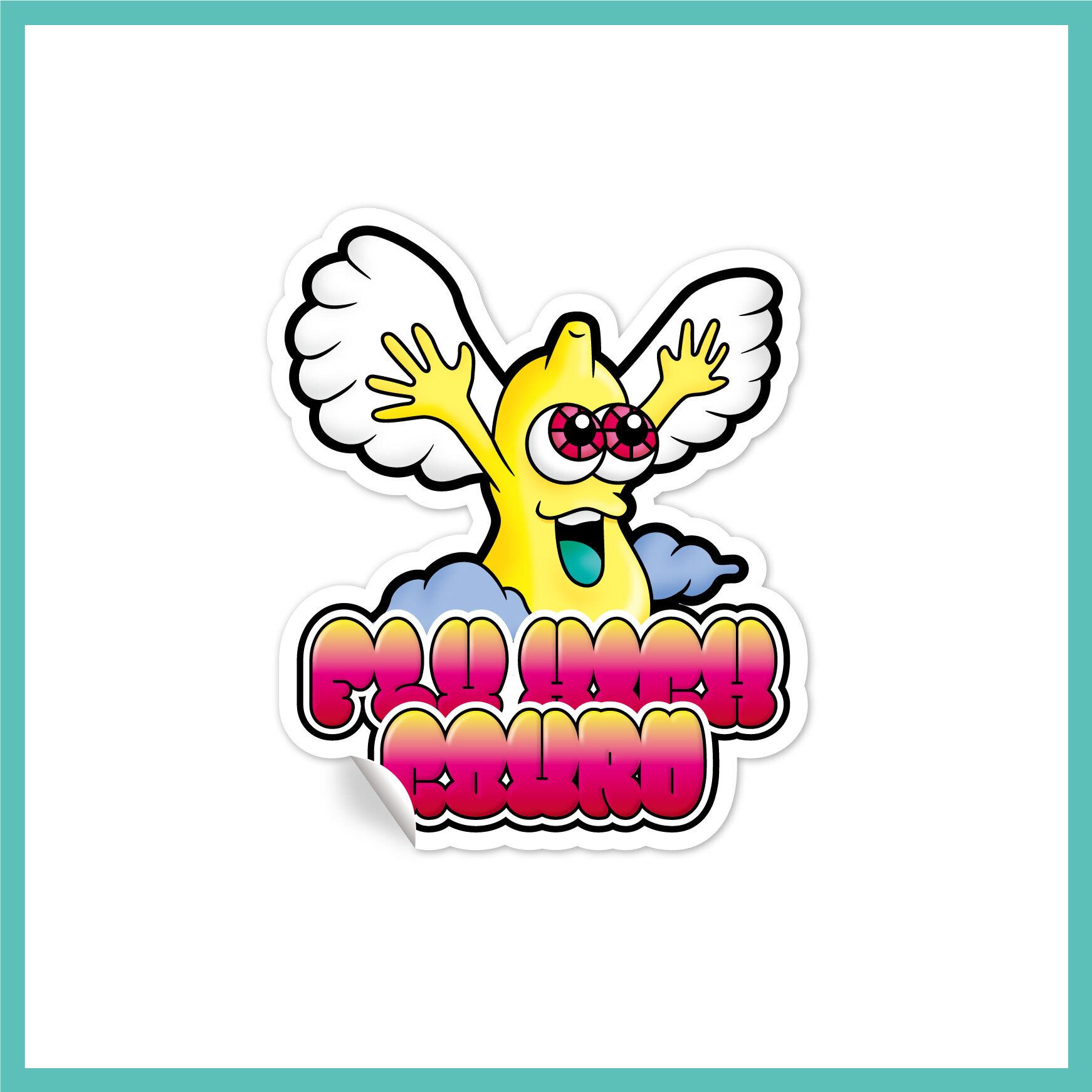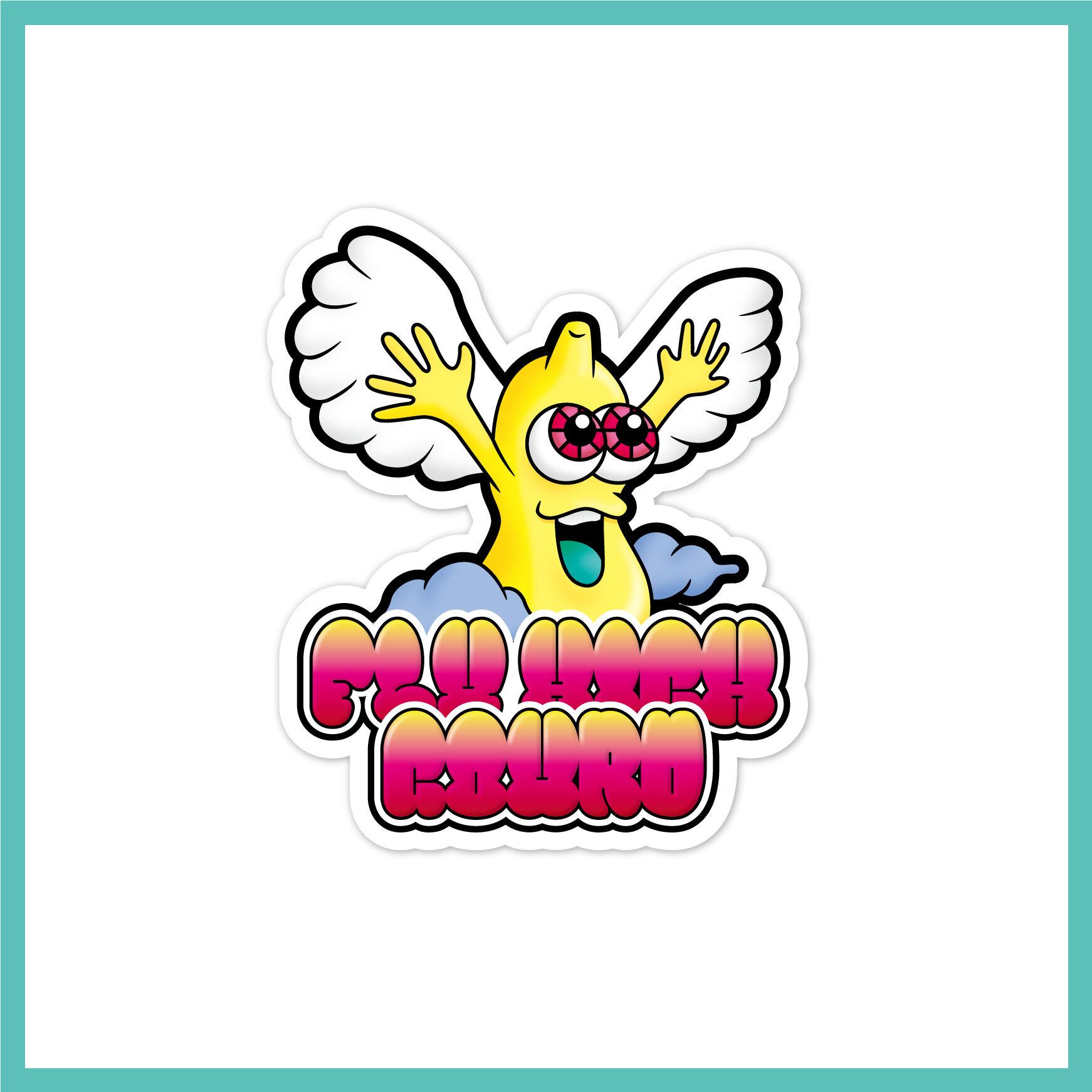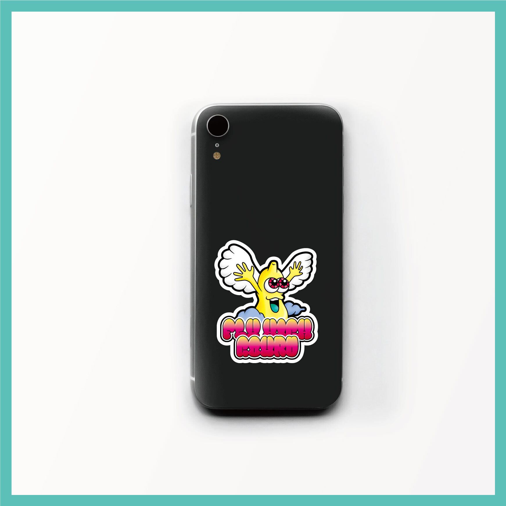 TItle:空飛ぶヒョウタンくん Type:ステッカー Size:55mm×65mm FLY HIGHなヒョウタン(GOURD)くん。 スマホケースに挟んだり貼り付けたりして、持ち歩いてみませんか?