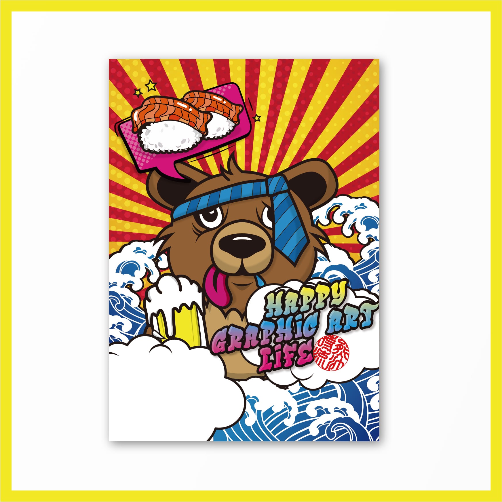 TItle:DRUNK BEAR Type:複製ポスター Size:210mm×297mm デジタル作品のポスターです。 酔っぱらったポップなくまをお部屋に飾ってみませんか?
