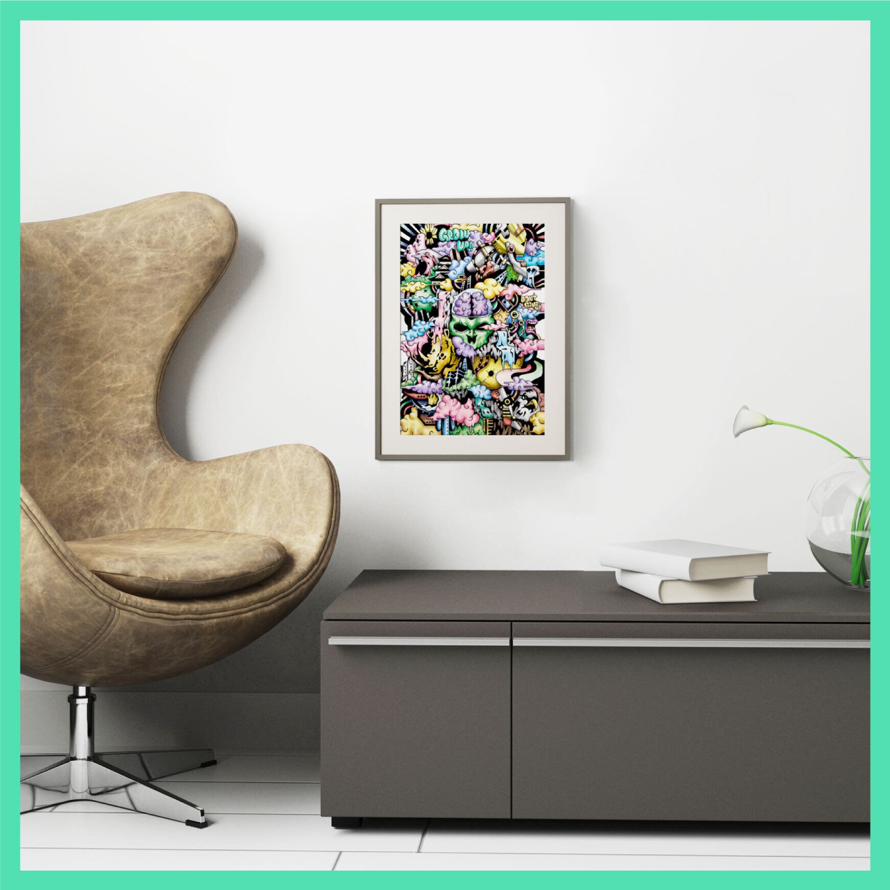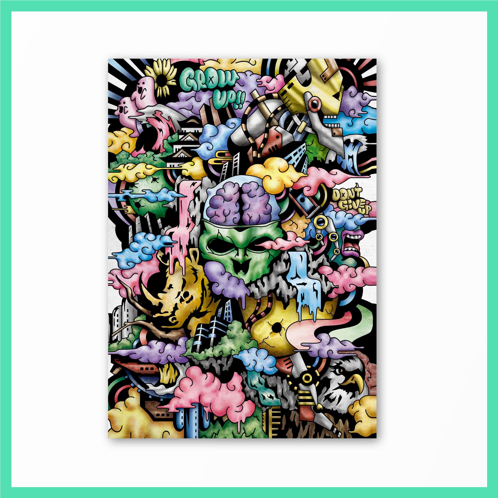 TItle:[ネット限定 大特価]GROW UP[ポスター] Type:複製ポスター Size:210mm×297mm デジタル作品のポスターです。 グラフィティアートとポップなイメージが融合した作品です。カラフルな世界を味わってみませんか? ※額装はありません。※写真はイメージです。