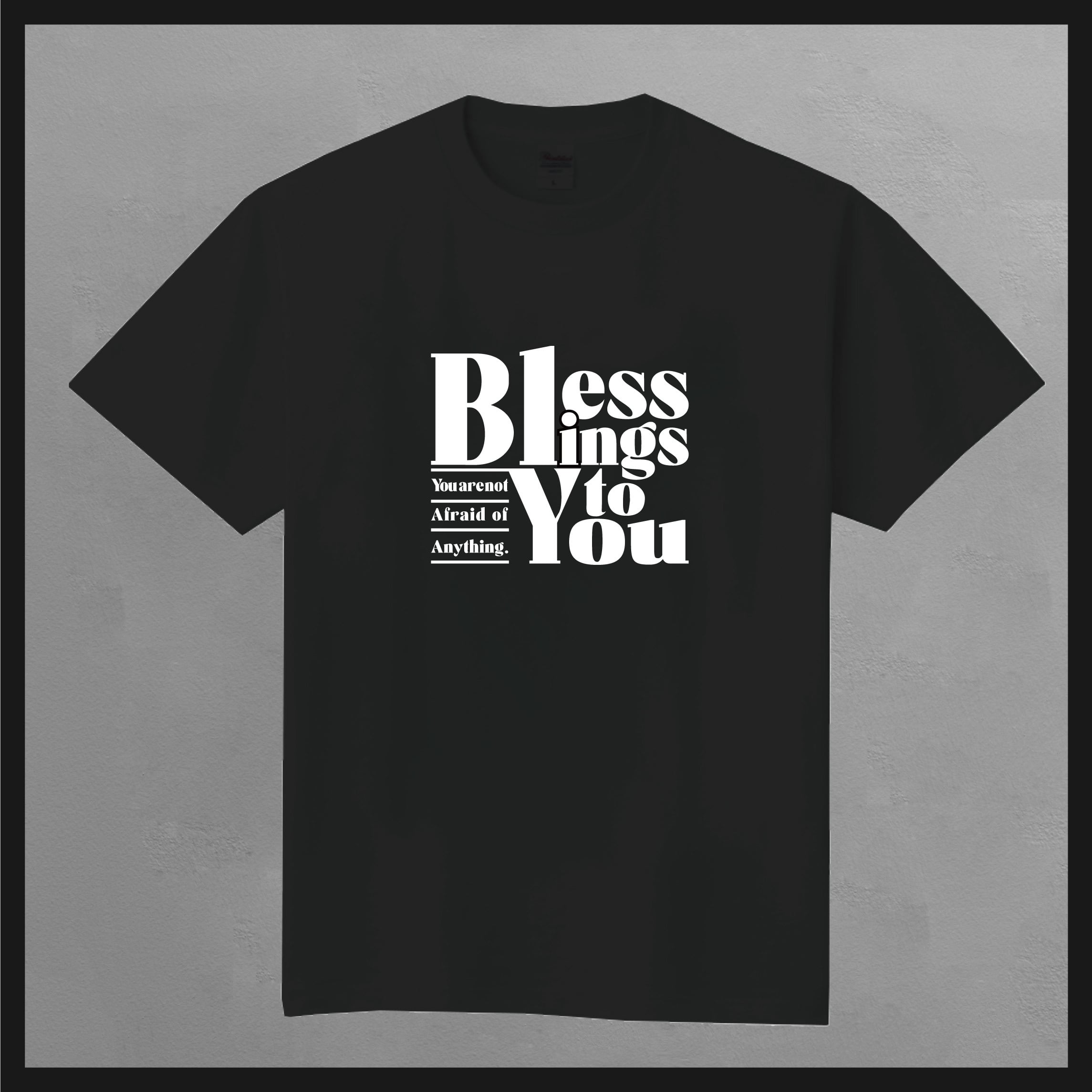 TItle:[Tシャツ]Blessings to You Type:Tシャツ Size:S5着、M5着、L5着、XL5着 恵があなたにあるから恐れる必要はないと訴えるTシャツです。 ※完全受注製作ですのでお届けに時間がかかります。